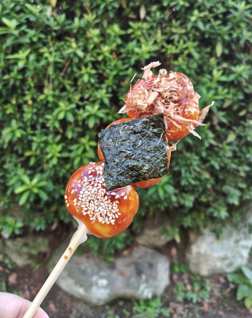 【半蔵餅】は上から鰹節、海苔、白ごまがトッピングされています。