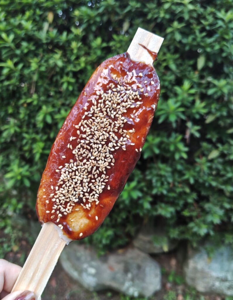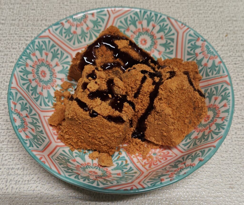 きな粉だけだと表面がパサっとするので、別売りの黒みつ(1袋 税込 ¥10)があると更に美味しく食べられます。