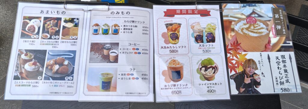 公式にて、本場の和菓子職人による岡崎城本丸茶屋だけの「出世開運わらび餅」は絶品です。との記載があり、わらび餅メニューが多いです‪💡‬