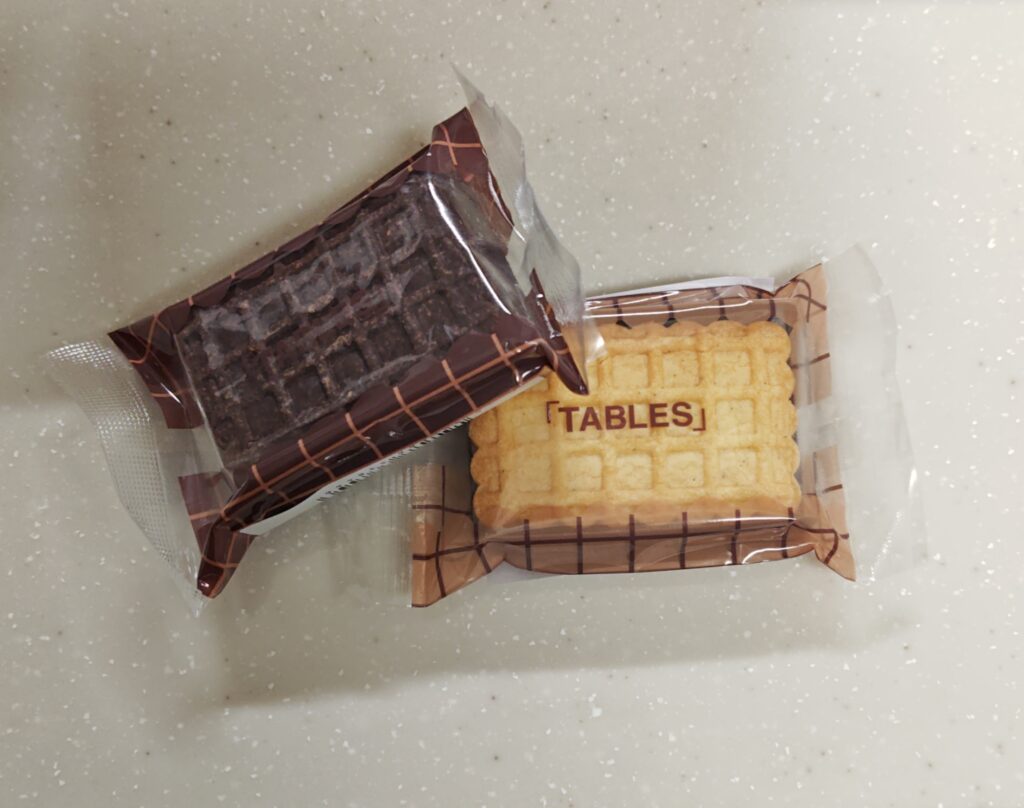 「ミルクチョコ&プラリネ」の方はフレークが入っており、ザクザクした歯触りです。細かーいパフが入ってるみたいな食感。
