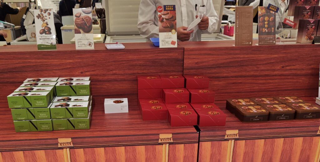 【ラングドシャ アールグレイ】、【プチ プレジール】【クッキー】がそれぞれ4種、【ドバイチョコレート】などが販売していました。