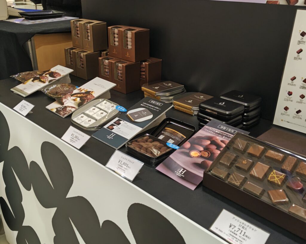 フードメゾン岡崎に常設店があるので、そちらでも取り扱いのある【バームショコラ ド ヴォヤージュ】をはじめ、【ショコラクランチ】【ボンボンショコラ】が2種のみありました。