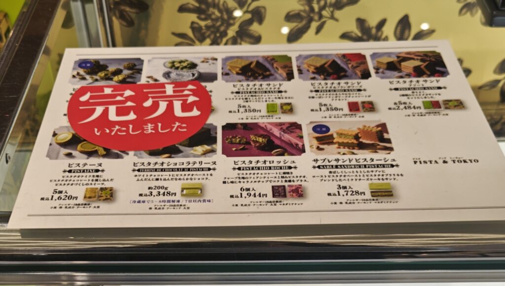 PISTA&TOKYOは冷蔵品が完売。