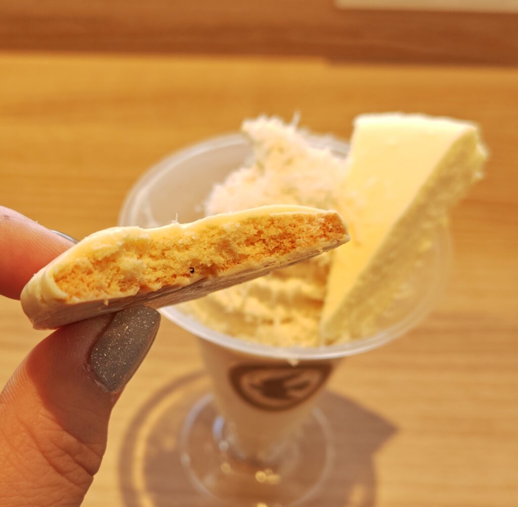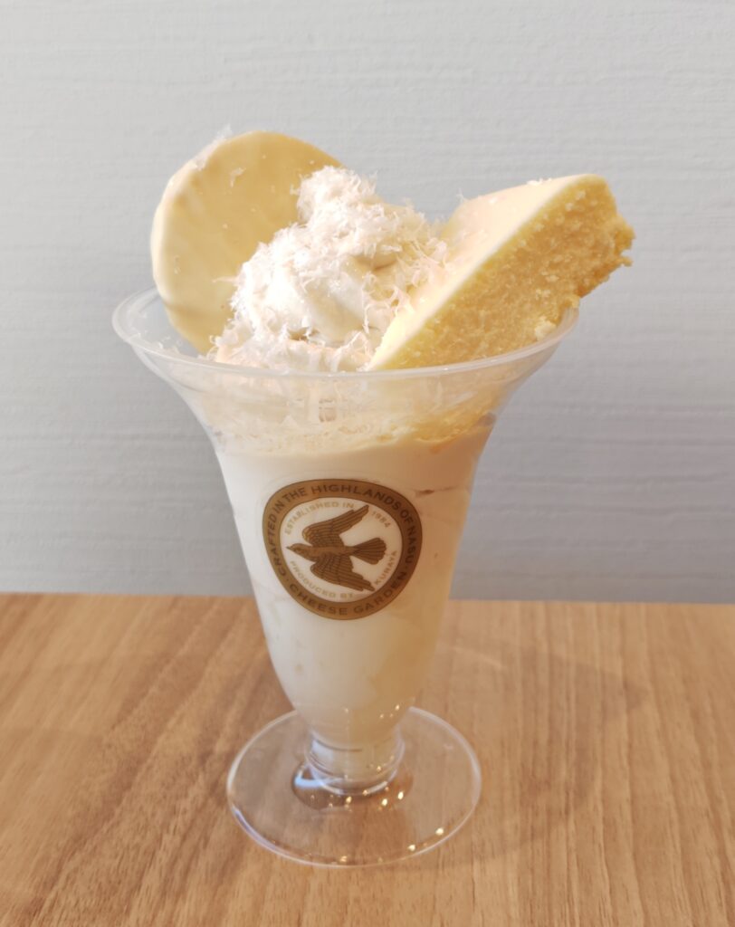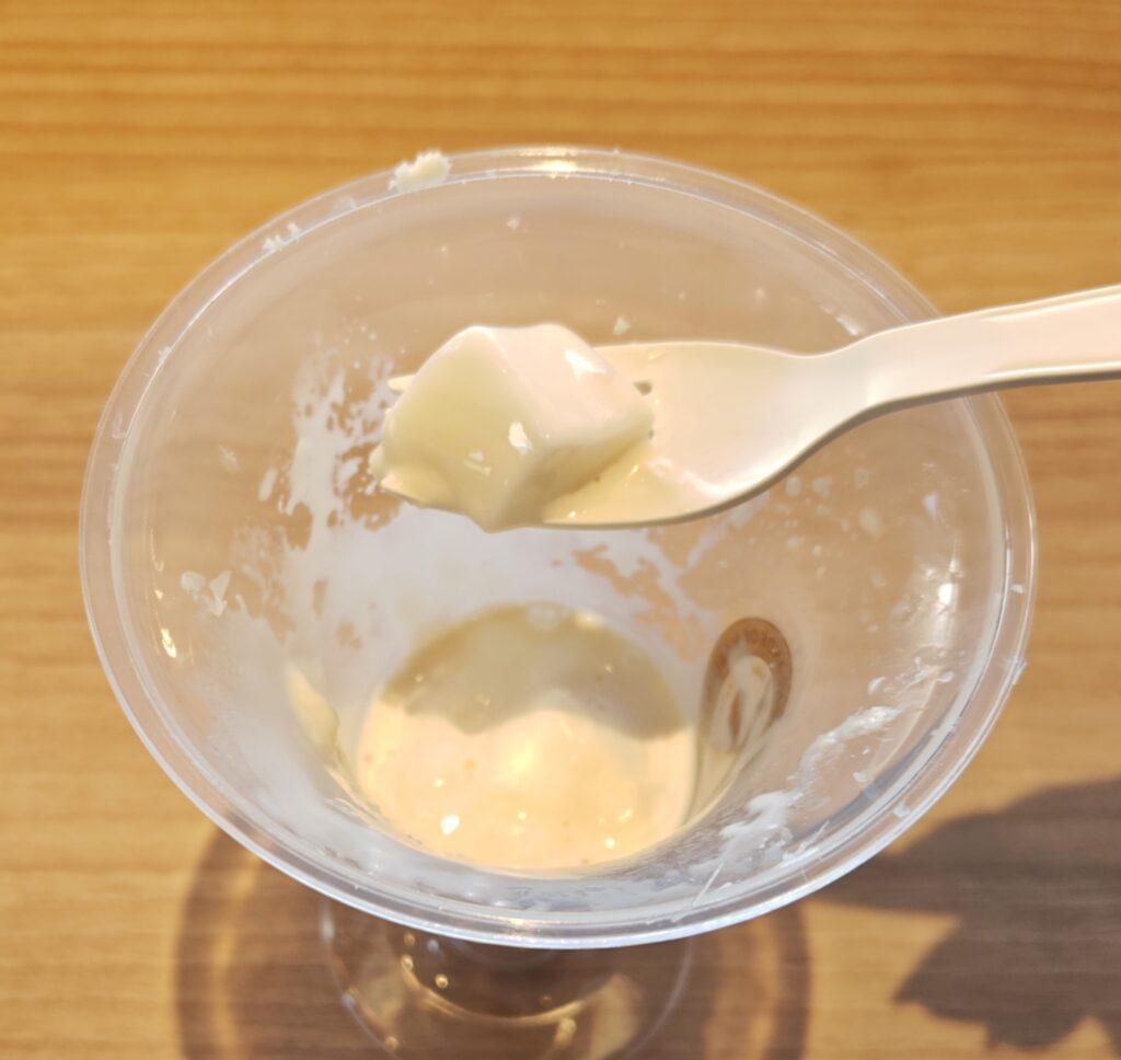トップに乗っているチーズのソフトクリームがとても滑らかで、これだけでも本当に美味しいです。グラスの中に入っているパンナコッタはやや固めのぷるぷる食感になっていて、なめらかなソフトクリームとの違いも楽しめました。