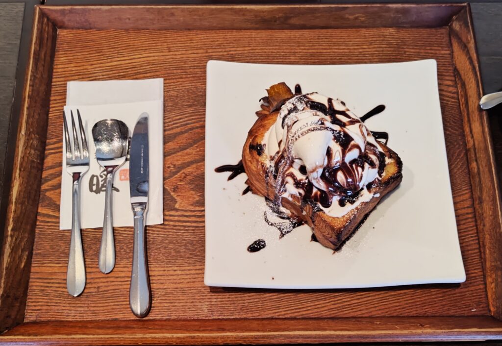 ハニートーストのソースは、迷った末にチョコレートを選択。