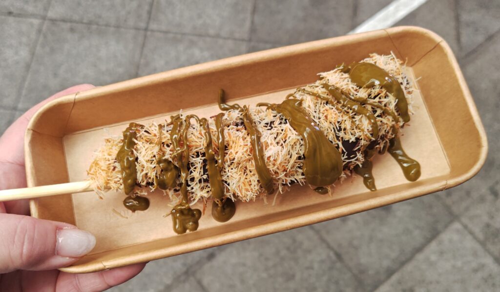 バナナを覆うチョコレートのコーティングはしっかりと厚めで、上には話題のカダイフが乗っているんですね。ドバイチョコのソースもすごく濃厚で、これ1本でかなりの満腹感がありました。