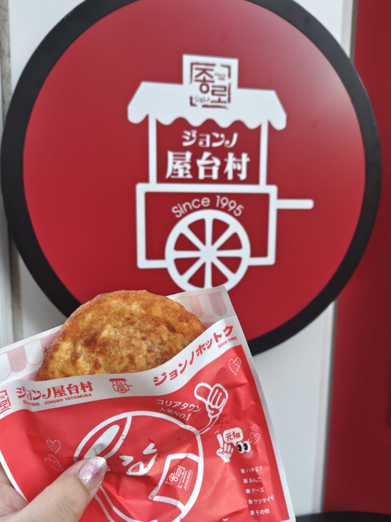 ホットクはワンハンドで食べられるため、食べ歩きにも向いています。