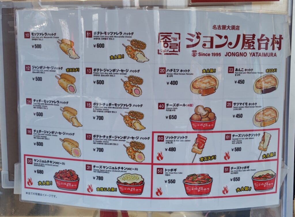 ジョンノ屋台村は、韓国で親しまれているホットクをはじめ、ハットグやトッポギ、チーズボール、ソトックソトックなどの屋台フードを提供するお店です。