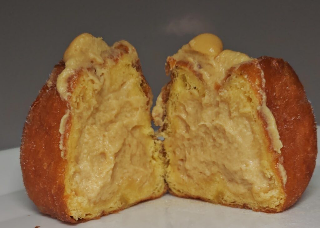 こちらも同じく砂糖多めで油っぽさがないふんわり生地です。ただ、クリームはたっぷり入っているものの、きなこの風味よりもクリーム感が強く主張してくる印象でした。全体的に砂糖が多めで甘さがガツンとくるので、好みが分かれるかもしれません。