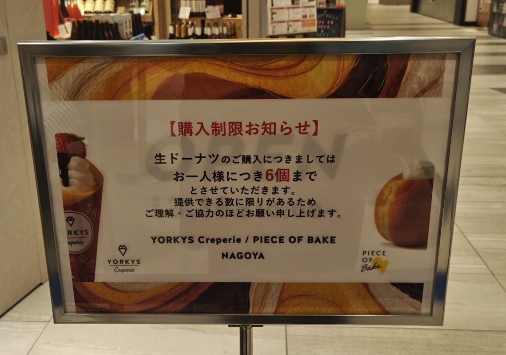 2026年3月23日現在、生ドーナツの購入は1人6個までと案内がありました。