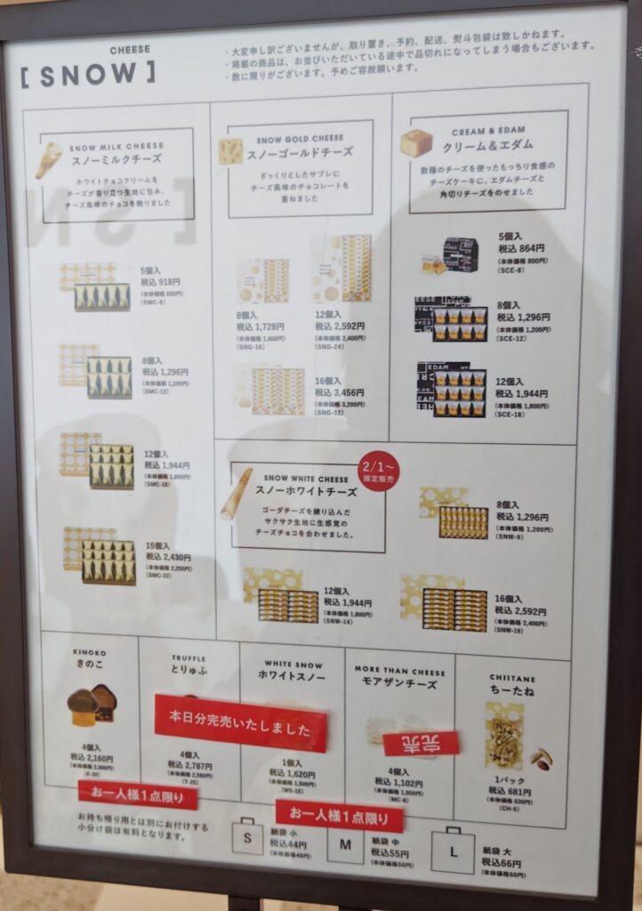 ▪ こちらのほかに「スノーホワイトチーズ」もありますが、2/1〜の限定販売となっています。販売期間にはご注意ください。