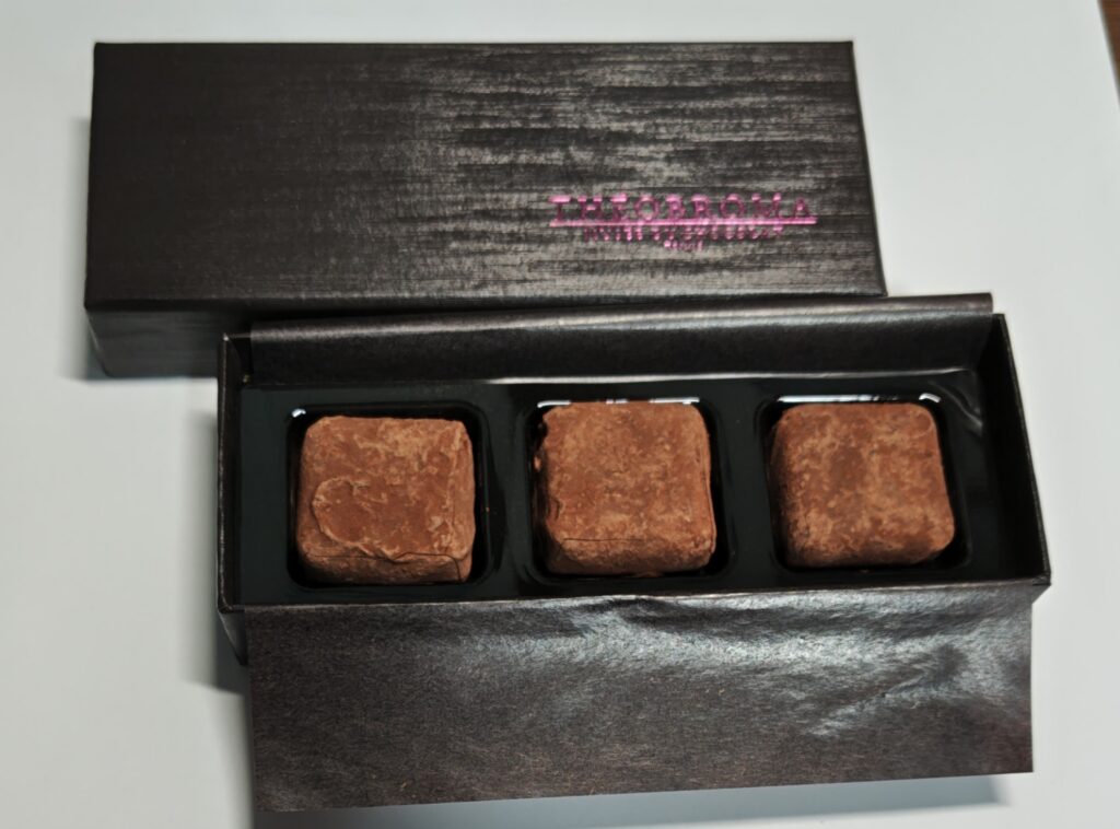固さやココアパウダーの量まで計算されているようで、全体のバランスがとても良く、甘すぎず苦すぎない、ちょうどいい味わいでした。仕事終わりの疲れた体に、一粒で幸せになれる贅沢な一服です。