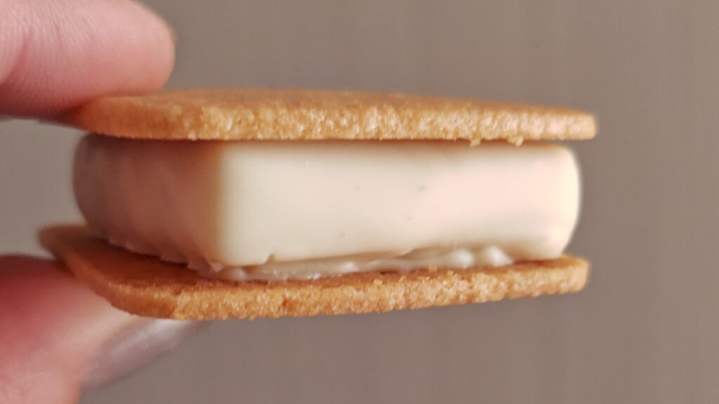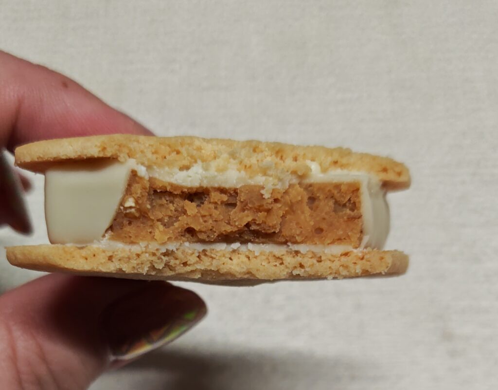 ​一口食べた瞬間、「中にそのままクルミッ子が入っている!?」と感じるほど、あの香ばしいクルミとキャラメルの風味が口いっぱいに広がります。外側のコーティングはまろやかなホワイトチョコレート。クルミッ子の濃厚さとホワイトチョコの優しい甘さが、どちらかが主張しすぎることもない、ちょうど良いバランスでお互いを引き立て合っています。